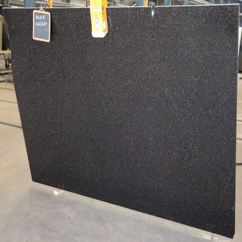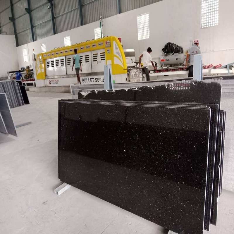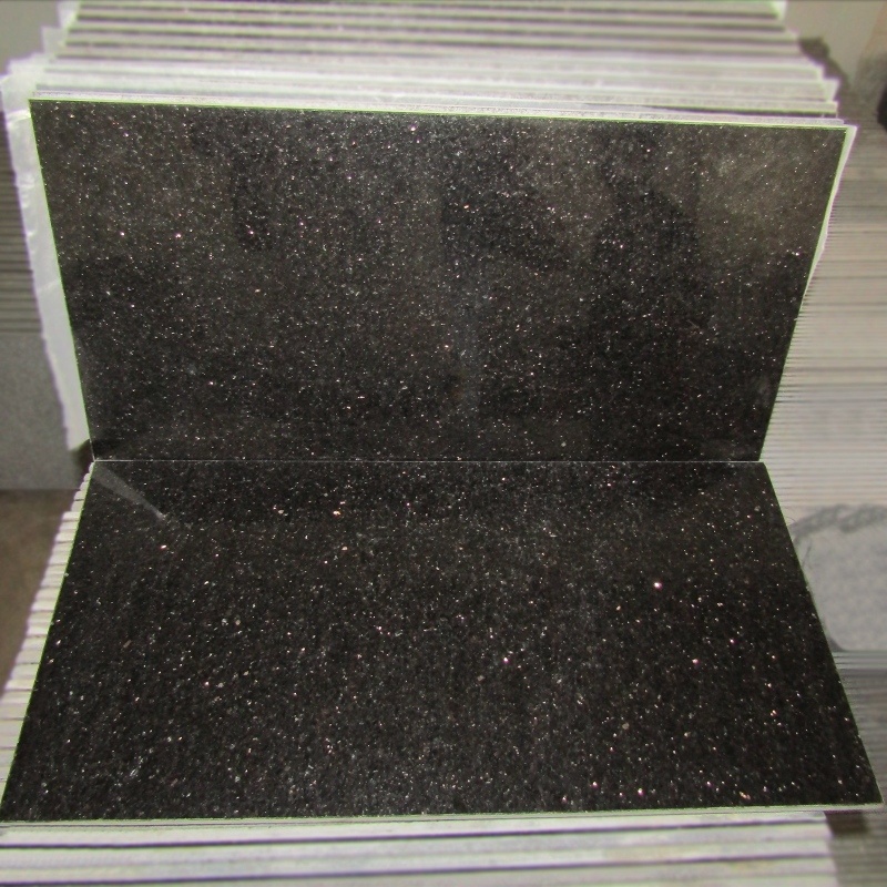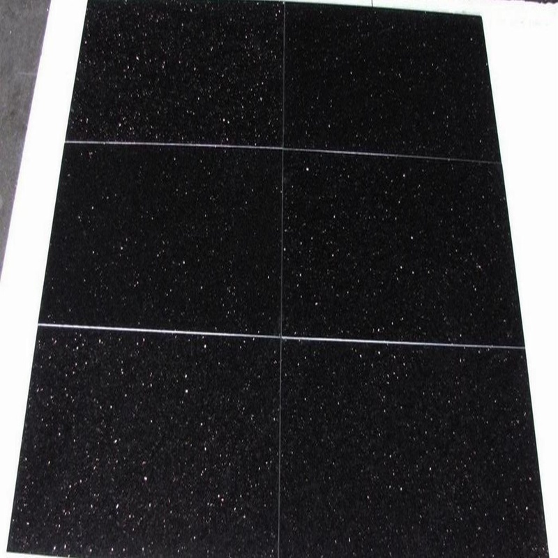 Black Galaxy granite tiles are known for their deep black background with golden specks that resemble stars in a galaxy. They are highly durable, elegant, and widely used for luxury flooring, countertops, and decorative interiors.